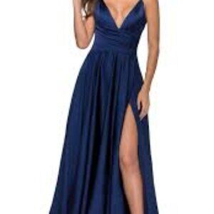 NWOT- La Femme Strappy Back Satin Ballgown