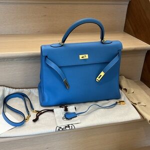 Hermès Kelly 35 Retourne Blue Paradis Clemence GHW