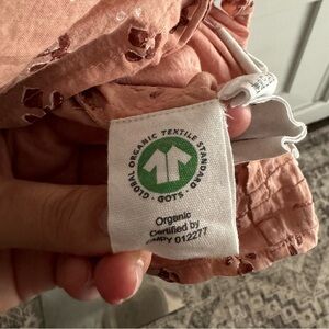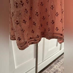 This lovely babydoll dress by Cleobella features a soft, muted pink color with a delicate floral pattern throughout. The relaxed silhouette is comfortable and stylish, with a V-shaped neckline and gathered detail at the chest for added texture.