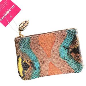 NWT M. Andonìa Orange & Teal Snake Leather Coin Pouch Bag Purse