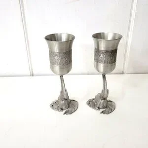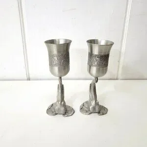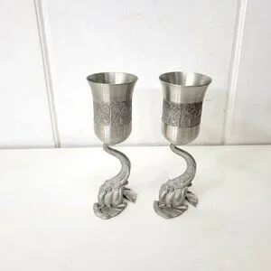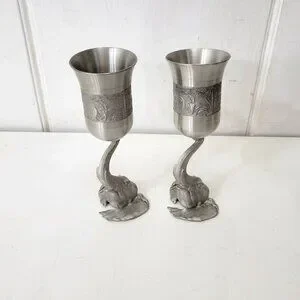 Elegant pewter goblets featuring intricate elephant designs. Ideal for wine enthusiasts or as a unique addition to your home decor.