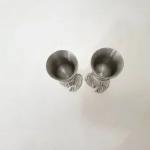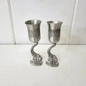 Elephant-Themed Pewter Wine Goblets Pair
