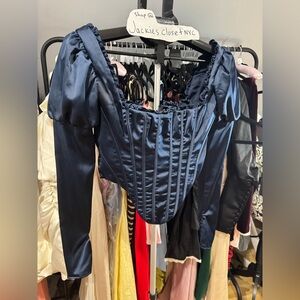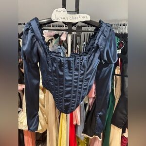 Navy Puff Sleeve Corset/Size S $149 House of CB NWOT