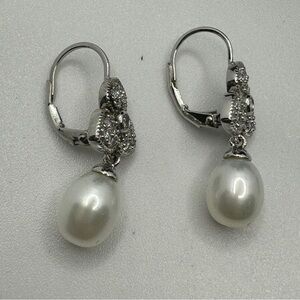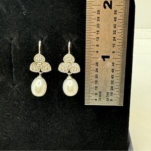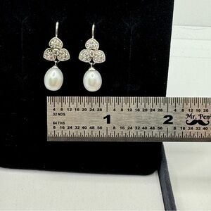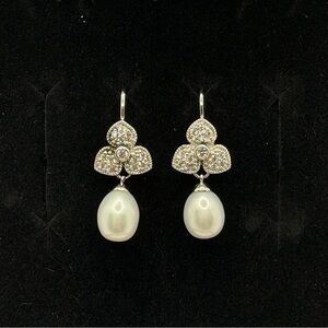 Esposito Diamonique Sterling Silver Cultured Pearl Earrings Dangle CZ Flower