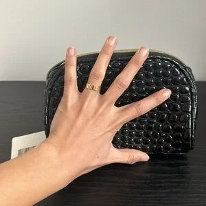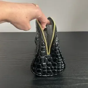 New with tags. Black, bubbly texture. Inside print of make up and zipper pocket.