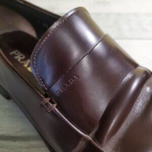 Pair of Prada Men’s Bown Leather Loafers Size 8 Made in Itay Toe - Heal 12” OSD