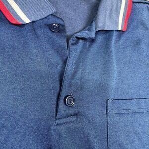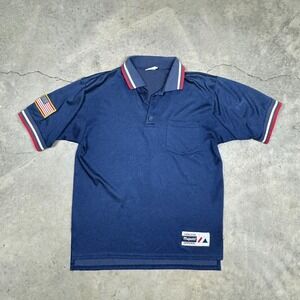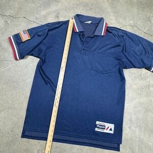 Vintage Majestic Polo Shirt Blank USA Flag Patch Mens Medium Blue Collared