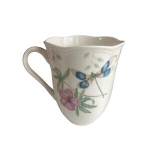 Enhance your morning routine with these elegant Lenox Butterfly Meadow mugs. Crafted from fine porcelain, each 12 oz cup features intricate floral and insect patterns, perfect for adding a touch of nature to your coffee or tea moments. In great condition.