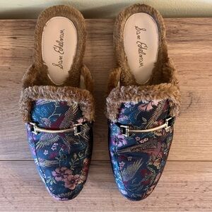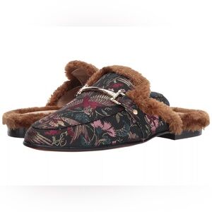 SAM EDELMAN Danica Tapestry Horsebit Fur-Lined Slip On Mule Loafer Flats Size 11