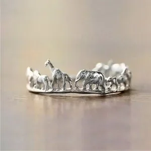 "Paradise" African Safari Animal Giraffe Elephant Zebra Silver Dainty Gift Ring