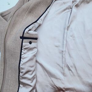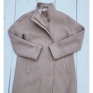 Classic J. Crew wool coat that is a timeless style and perfect wardrobe staple. Almost a light herringbone tweed pattern on light tan color. Wool is so soft and not scratchy at all! Overall in great condition for an amazing quality coat. Gold zipper that can be zipped from both ways (2 way zipper). Approximate flat lay measurements: Pit to pit: 22.5" Length: 34.5