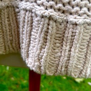 Free People cream chunky knit cowl neck sweater 🤩 - size small but runs oversized , measures 24.5” from top of shoulder to bottom hem & 21” across pit to pit - ultra soft chunky knit - wide detailed hem bottom - dropped sleeves - sooo comfy !