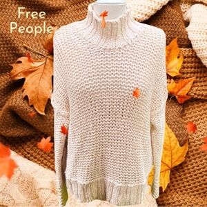FREE PEOPLE CREAM CHUNKY KNIT COWL NECK SWEATER -S -🤩