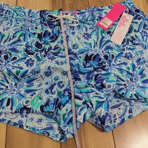 NWT! Lilly Pulitzer Luxletic Run Around Shorts in Iris Blue High Maintenance, women's Size XL. Beautiful! These athletic shorts have the prettiest blue floral print. The fabric is very comfortable and lightweight. It pulls on with an elastic and drawstring waistband. It has pockets. This would be the perfect wear for any casual or athletic activity! Measurements are shown in the photos. It comes from a smoke and pet free home. No defects were found upon final inspection. Messages if you have any questions. Enjoy!
