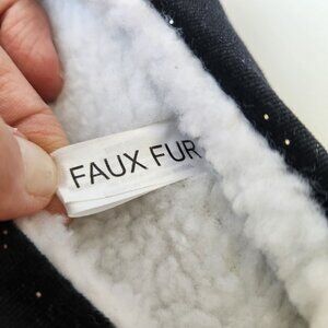Totes Ballet Slippers Black Sparkles Faux Fur Bunny Cozycore Sleepwear Comfy L