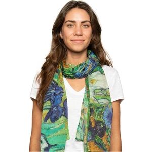 BRAND NEW WITH TAG - Scarf remains in original packaging. 100% Organic Cotton Scarf featuring large detail of one of the J. Paul Getty Center Museum's most popular paintings, Irises, by Vincent van Gogh.