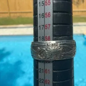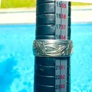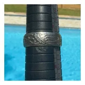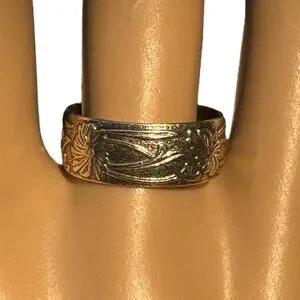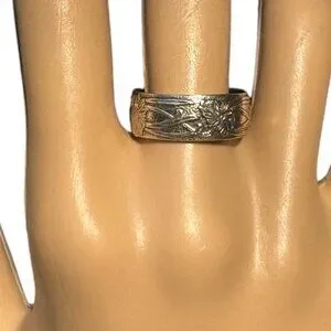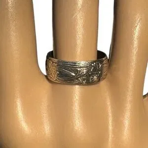 Antique-style wedding band showcasing detailed floral engravings. Ideal for a unique engagement or purity ring, reflecting timeless elegance and craftsmanship.