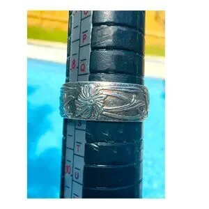 // Gorgeous feminine silver ring with a floral and leaf pattern.