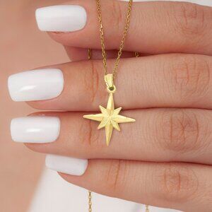 Solid 14k Gold North Star Pendant - Celestial Charm Star Pendant Gift for Her