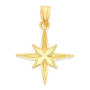 This dainty solid gold north star pendant is the perfect addition to any jewelry collection. Finished in diamond cut, it captures the light beautifully and will complement any outfit. But this pendant isn't just a pretty accessory - it also holds significant symbolism. The north star has long been a guiding light for travelers, as it is the brightest star in the constellation Ursa Minor and points true north. In many cultures, it is seen as a symbol of hope, guidance, and finding one's true path. This makes it a meaningful gift for anyone embarking on a new journey or adventure or seeking direction in their life.