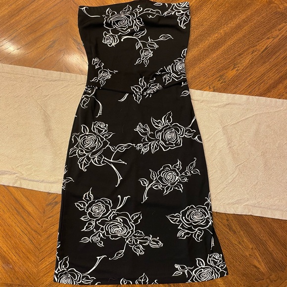 BLACK ROSE STRAPLESS DRESS BY LE CHATEAU S