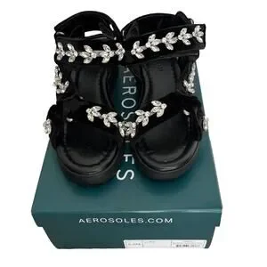 Aerosoles | Onda Black Velvet Crystals Chunky Sandals Size 5.5 NIB