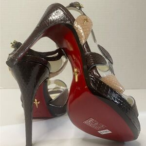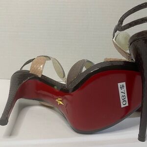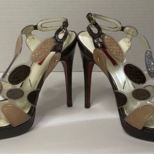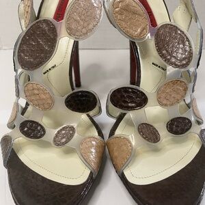 Cesare Paciotti multicolor snake skin circles on the foot with lucite in between. red leather bottom with signature dagger on the soul brand new original with box 5" heel