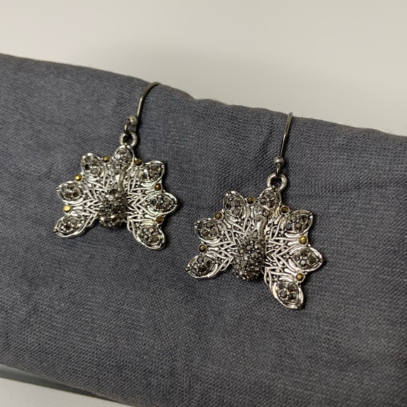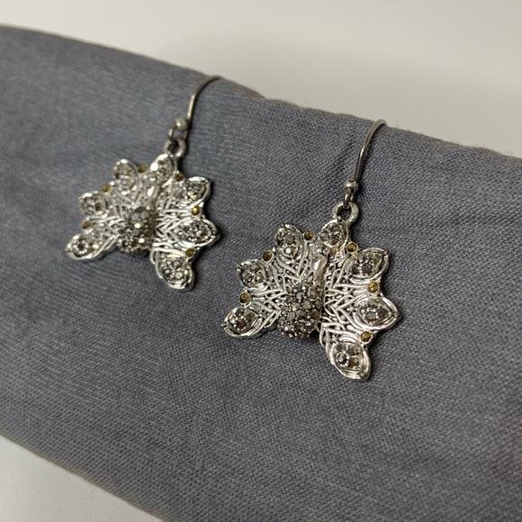 Lucky Brand Peacock Bedazzled Decorative Dangle Charm Silver Tone Earrings
