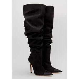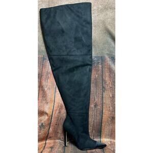 NIB Good American Women's Suede Stiletto Pointed Toe Over the Knee Boots Sz 12