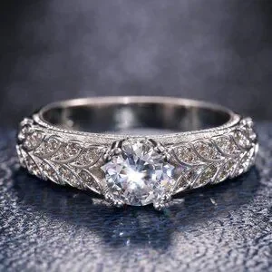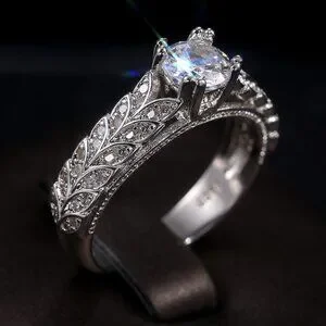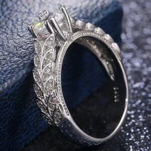 "925 Silver Crystal Zircon Stone Unique Leaf Design Ring for Women, VIP341
