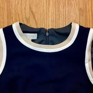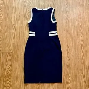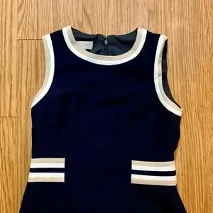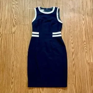 -Navy dress with white contrast trim