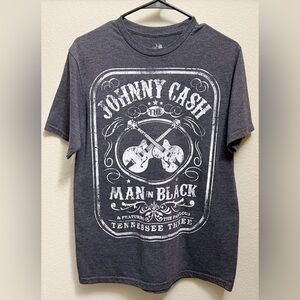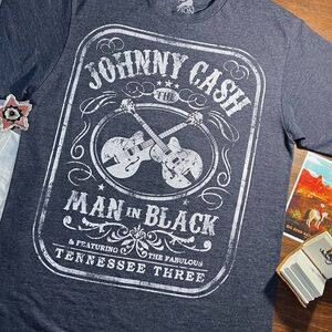 Walk the line and pay tribute to rockabilly icon Johnny Cash with this tee by Zion Rootswear. Distressed screen-printed lettering stands out against a charcoal background, mixing just a little ruggedness with the right amount of drama. Whether you're singing along to "Folsom Prison" or "Ring of Fire," celebrate The Man in Black in vintage style.