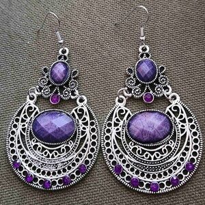 Any 4/$25! Antiqued Silver Purple Gem Boho Earrings
