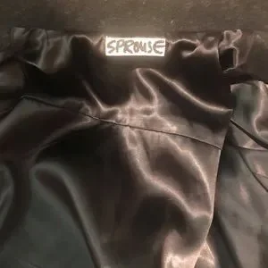 Collector’s Item motorcycle jacket. Very heavy thick wool. Multiple silver zippers. Identical jacket displayed at the Met! He was a well known designer for several rock and roll artists. I noticed some vague holes on right sleeve and chest. Had the piece cleaned at high end cleaners. Because of the depth and thickness of wool did not shred. Hard to see, but they are there. Could not identify whether moths. For this reason I have discounted it. Price is firm!!