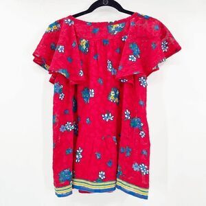 ba&sh Floral Lace Blouse Top Women's Size 1 Red Blue Pullover Y2k