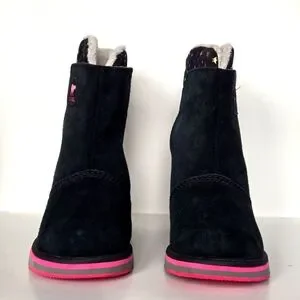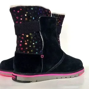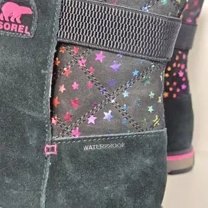 Sorel Rylee Waterproof Black Suede Warm Lined Pink Stars Toddler Girl Sz 5 Boots