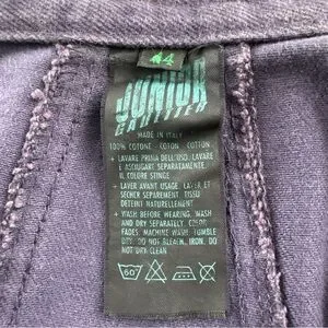 This skirt was part of a larger collection of Junior Gaultier denim pieces featured in Gaultier’s main line fashion show for summer 1988 called “La Concierge est dans l’Escalier.” Please see the photo gallery for some examples of the Junior Gaultier pieces featured in the show.
