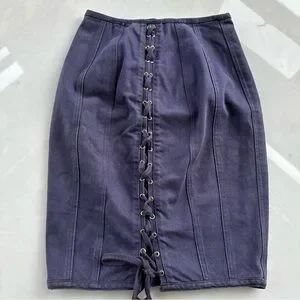Jean Paul Gaultier Junior Gaultier Vintage 1988 Denim Corset Lace-Up Skirt. Marked size IT 44 but fits much, much smaller - more like an XS! Please see measurements below.