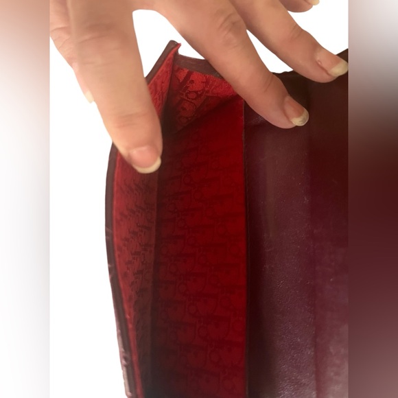 Beautiful authentic patent lambskin quilted leather Dior wallet in a rich Merlot colour with signature D snap closure and red Dior lined interior. After market chain added with aftermarket charms. Comes with Dior box and tissue, Dior dust bag, generic chain and charms - added matching bunny tail and Dior trinket.