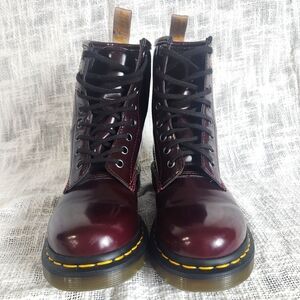 New Dr. Martens Cherry Red Air Wair Vegan RubOff 1460 Lace Up Boots