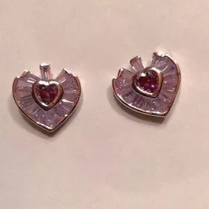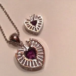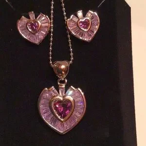 New Heart Necklace/Earring Silver tone rhodium plated. Lilac & Amethyst CZ’S