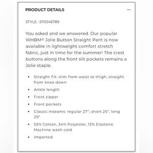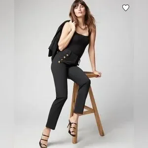 NWT WHBM Jolie Button Straight Lightweight Pants Size 14 L - Ankle 29โ Black