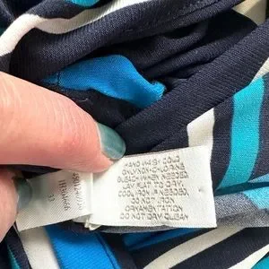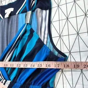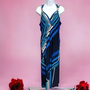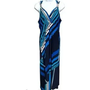 Beautiful turquoise, black, and white sleeveless maxi-sundress with silver-toned hardware accents on front straps. Love this dress, but turns out I’m short and this is just toooo long on me. 🤷♀️
