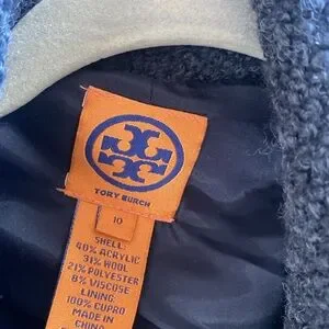 Beautiful Tory Burch Coat! Perfect for shopping or date night! Buttons are gun metal grey and the coat is dark grey! The pit to pit measurement is 18