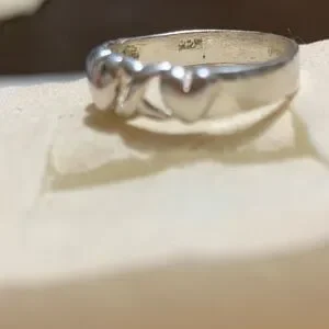 Crossed X heart band design. I purchased this as Sterling silver and it is marked NF (Chapal Zenray INC) 925. It’s in Excellent preowned condition.