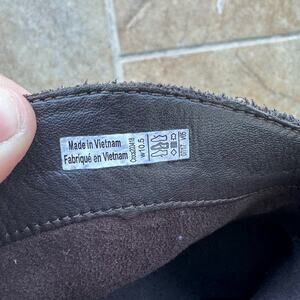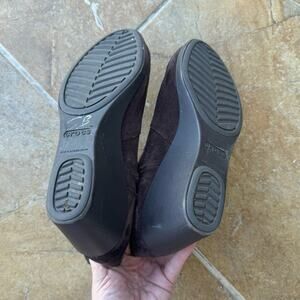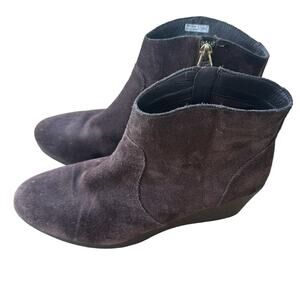 Crocs women’s Leigh brown suede dual comfort wedge booties size 10.5