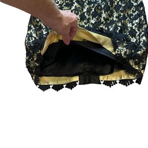 Strapless, gold with black lace overlay, fully lined, exposed back zipper