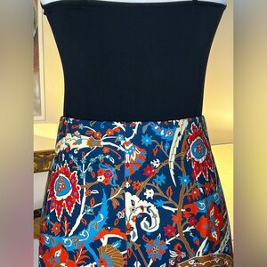 This sleek Gretchen Scott pencil skirt is perfect for the fall and winter seasons. It can be paired nicely with so many things because of the various colors throughout. A few details about the skirt are listed here: