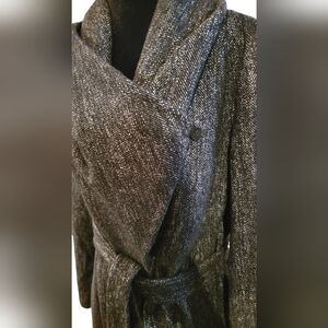 Cole Haan Signature Houndstooth Wool Blend Belted Trench Pea Coat Size 14