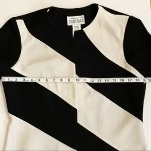 Dani Max Blazer Open Front Striped Short Sleeve Jacket Black Off White
